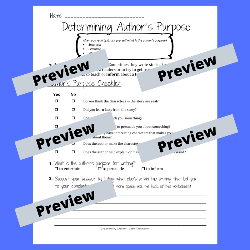 Free Printable Author s Purpose Worksheet Bundle 3 Activities