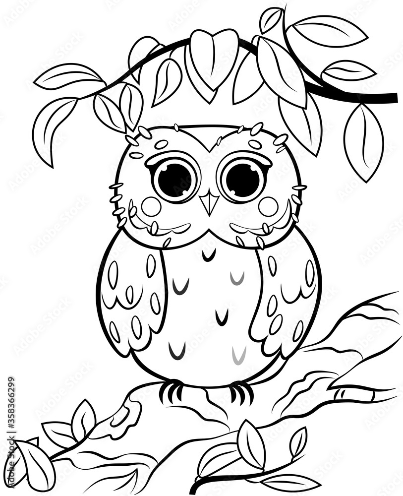 Printable Coloring Page Outline Of Cute Cartoon Owl On A Tree Branch Vector Image With Nature Background Coloring Book Of Forest Wild Animals For Kids Stock Vector Adobe Stock