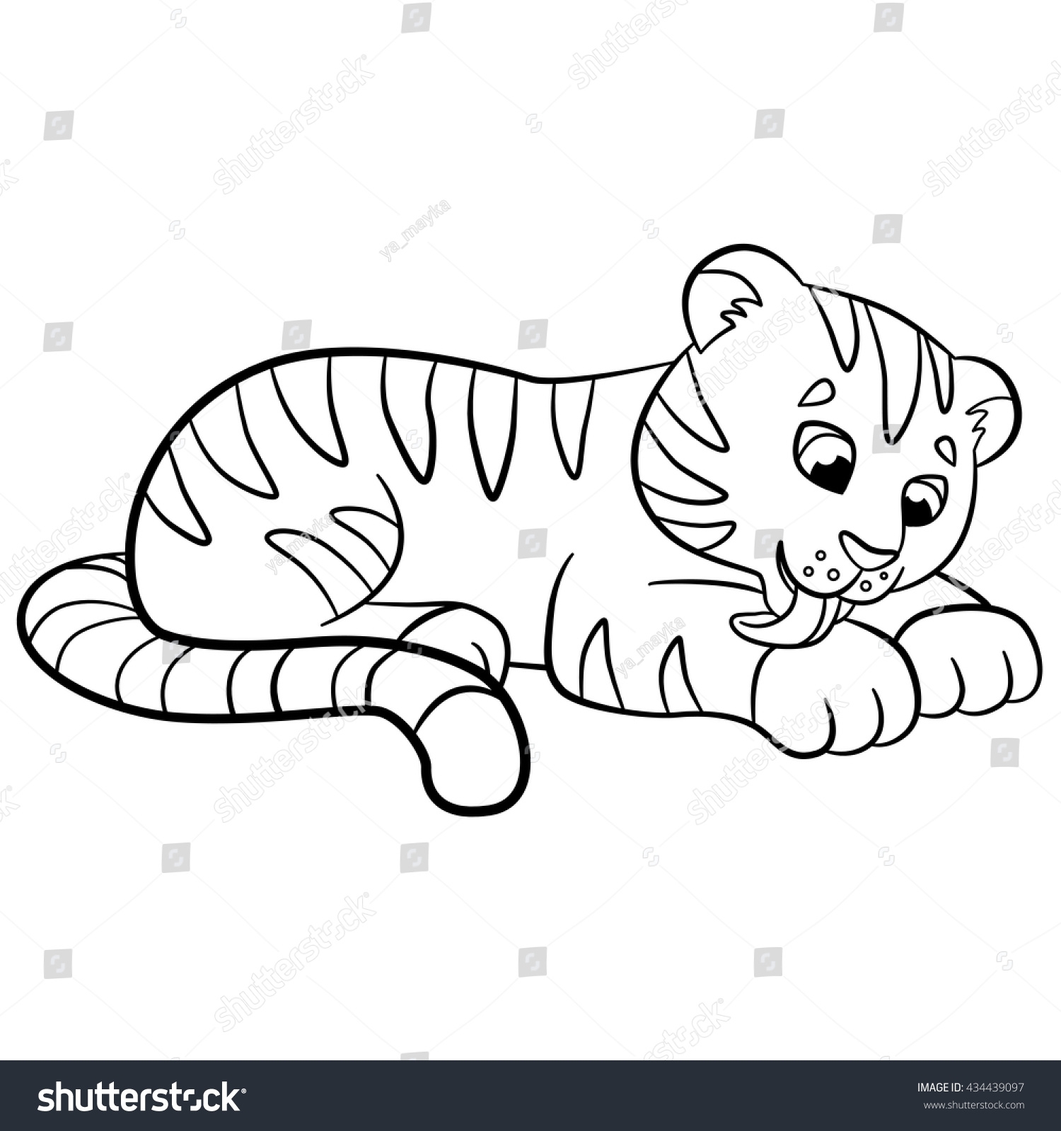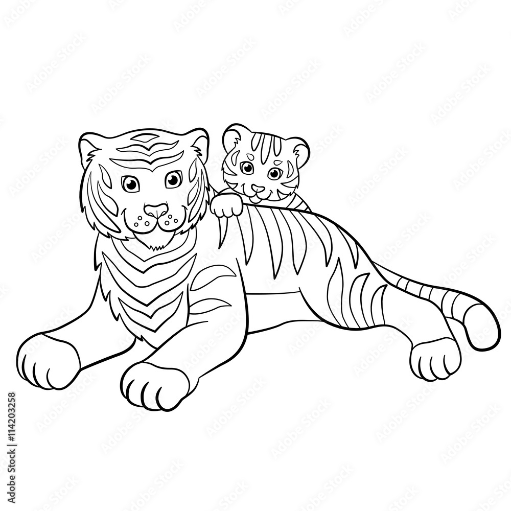 Coloring Pages Wild Animals Mother Tiger With Her Little Cute Baby Tiger Stock Vector Adobe Stock