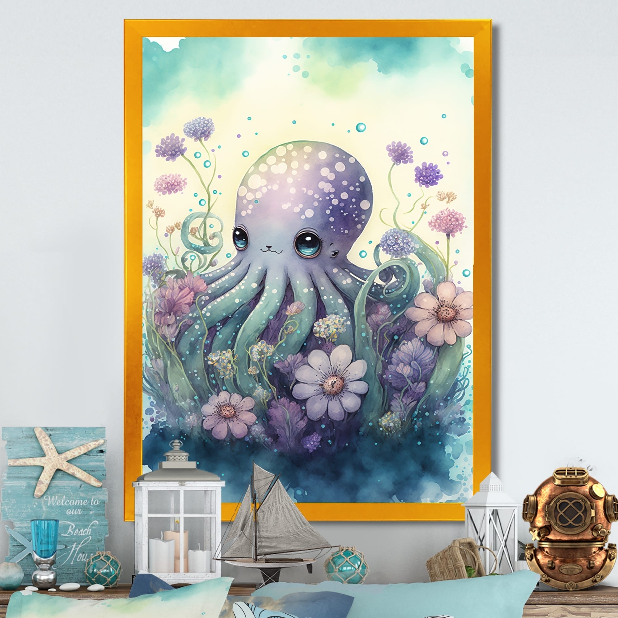 Designart Cute Little Baby Octopus Surrounded By Flowers I Animal Octopus Framed Art Print Bed Bath Beyond 37760417