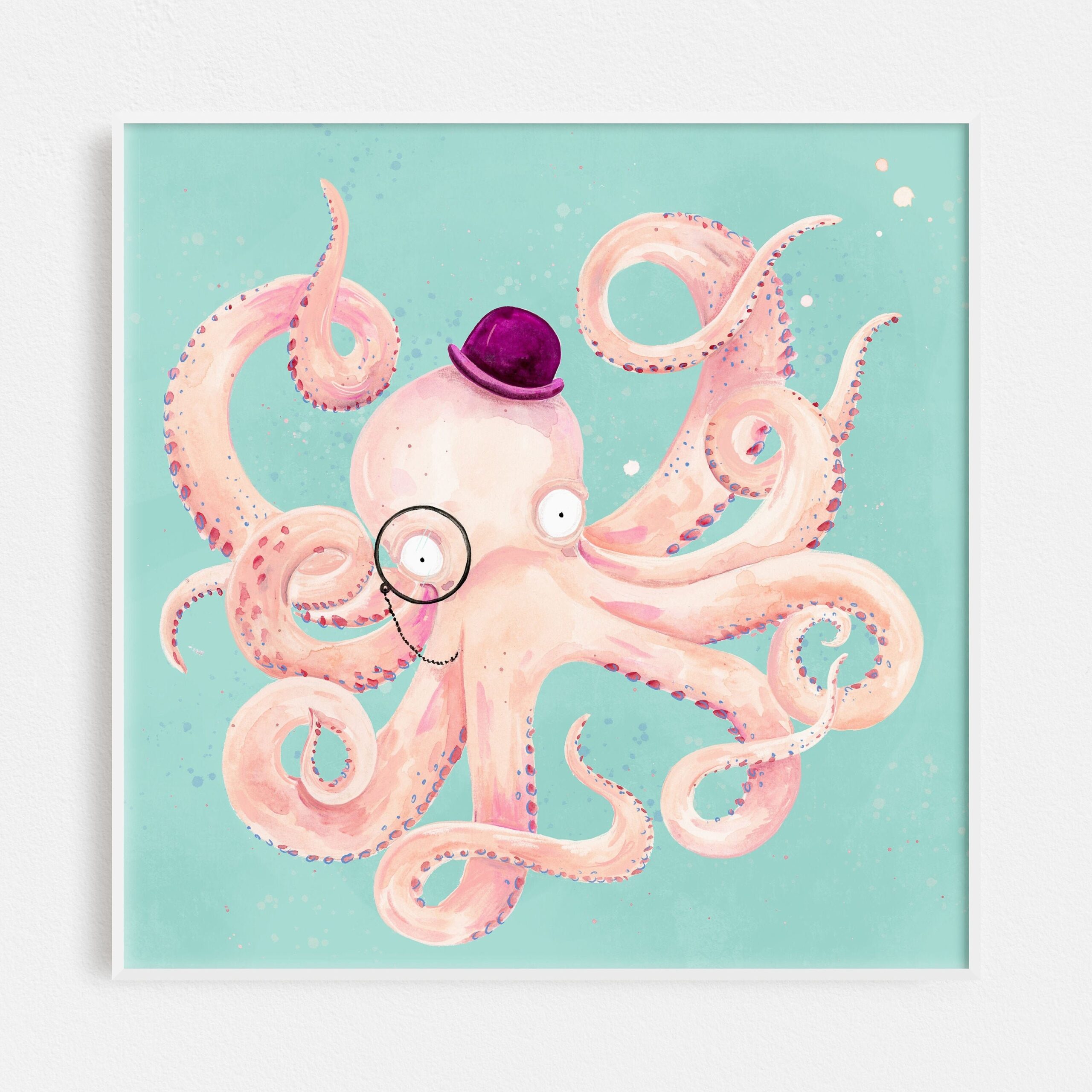 Watercolor Octopus Art Print Nursery Wall Art Nautical Children s Illustration Silly Octopus Painting In Top Hat Animal Kids Decor Etsy