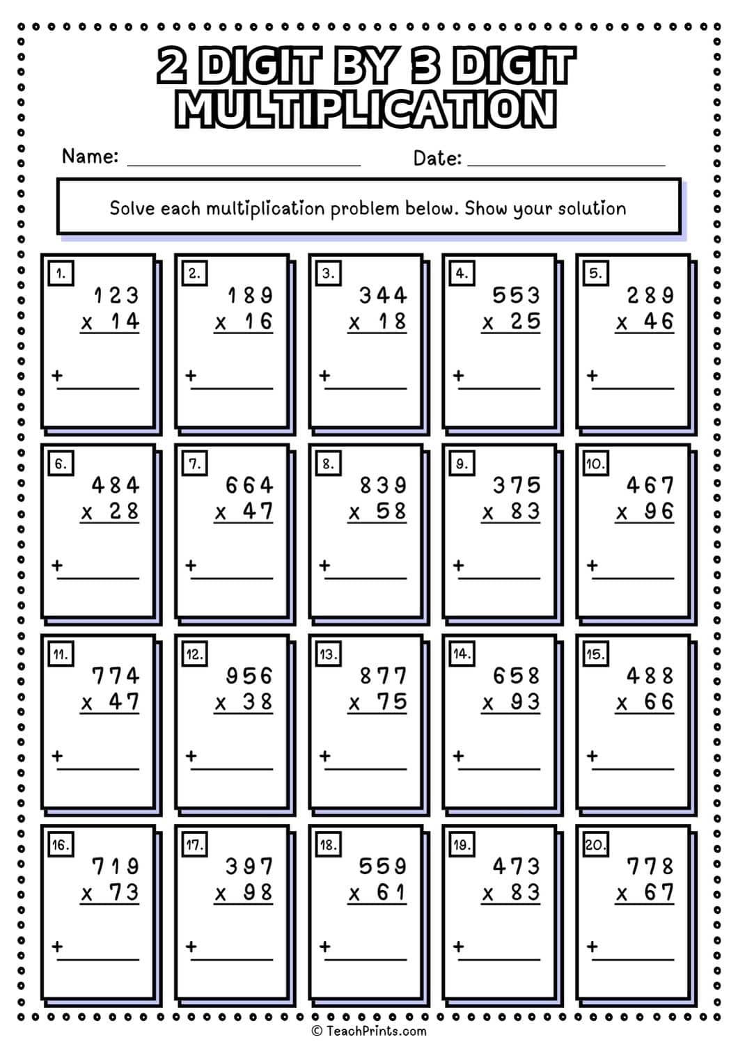 Free 2 Digit By 3 Digit Multiplication Worksheets Teach Prints