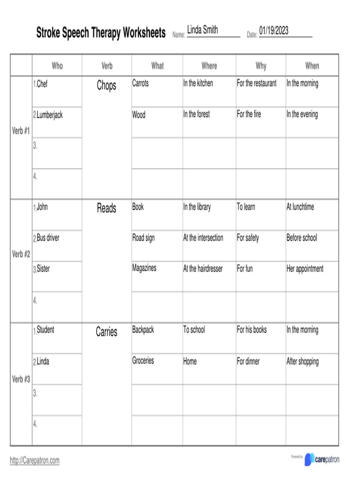Stroke Speech Therapy Worksheet Example Free PDF Download