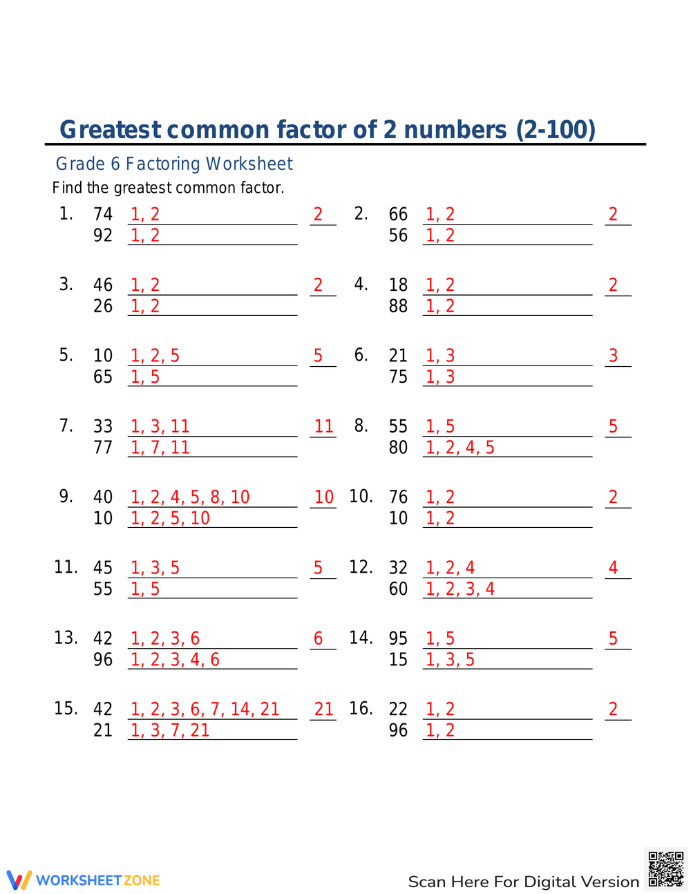Printable Greatest Common Factor Worksheets Download