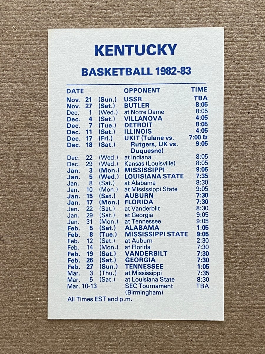 CBK 1982 83 KENTUCKY WILDCATS College Basketball Schedule Card TOM HEITZ EBay