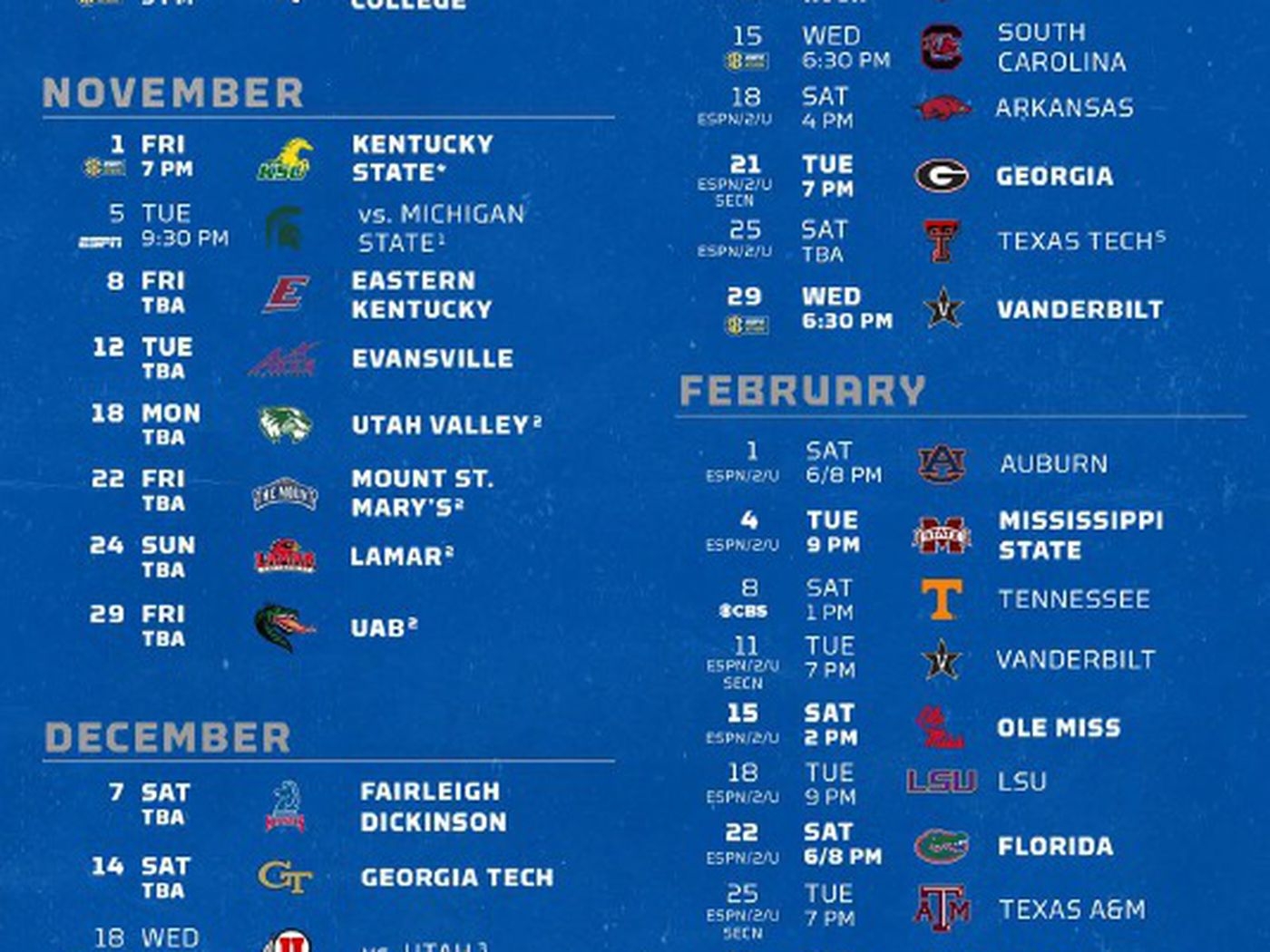 kentucky wildcats printable basketball schedule