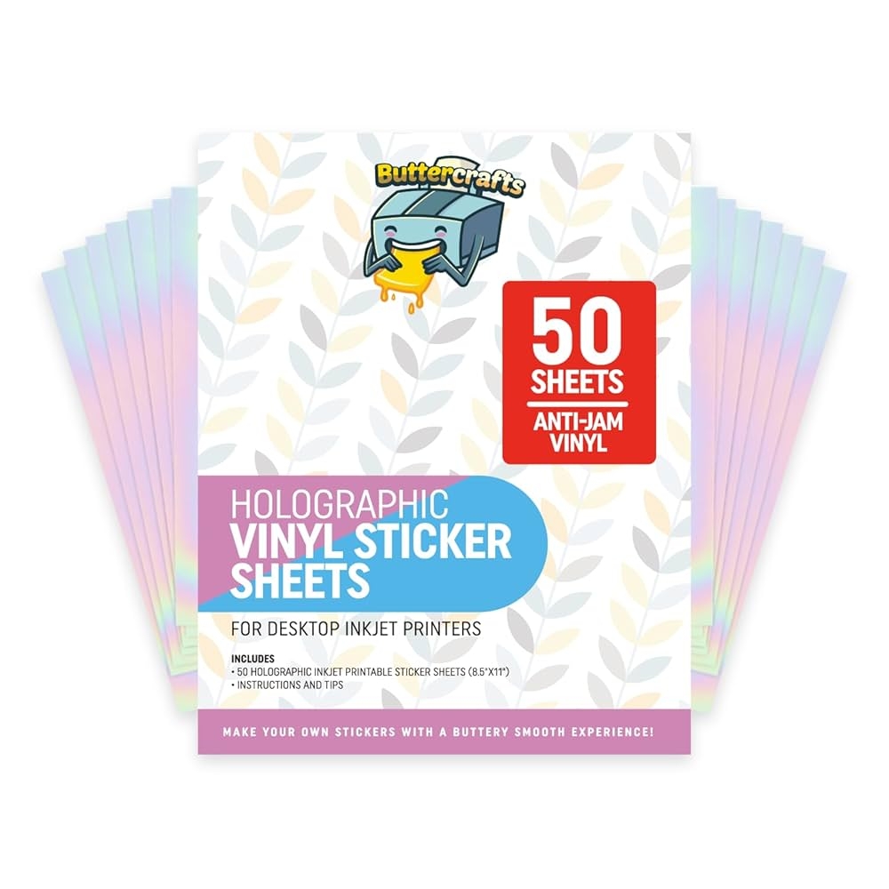 Amazon Printable Vinyl For Inkjet Printer Holographic Sticker Paper Glossy Waterproof 50 Sheets Inkjet Printable Vinyl Holographic Printable Sticker Paper For Inkjet Printer Office Products
