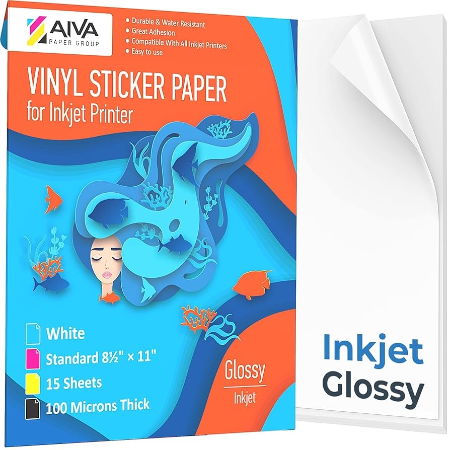 Amazon Printable Vinyl Sticker Paper For Inkjet Printer 50 Sheets A4 Glossy White StickerPaper Waterproof Vinyl Sticker Paper For Laser Printer DIY Stickers Office Products