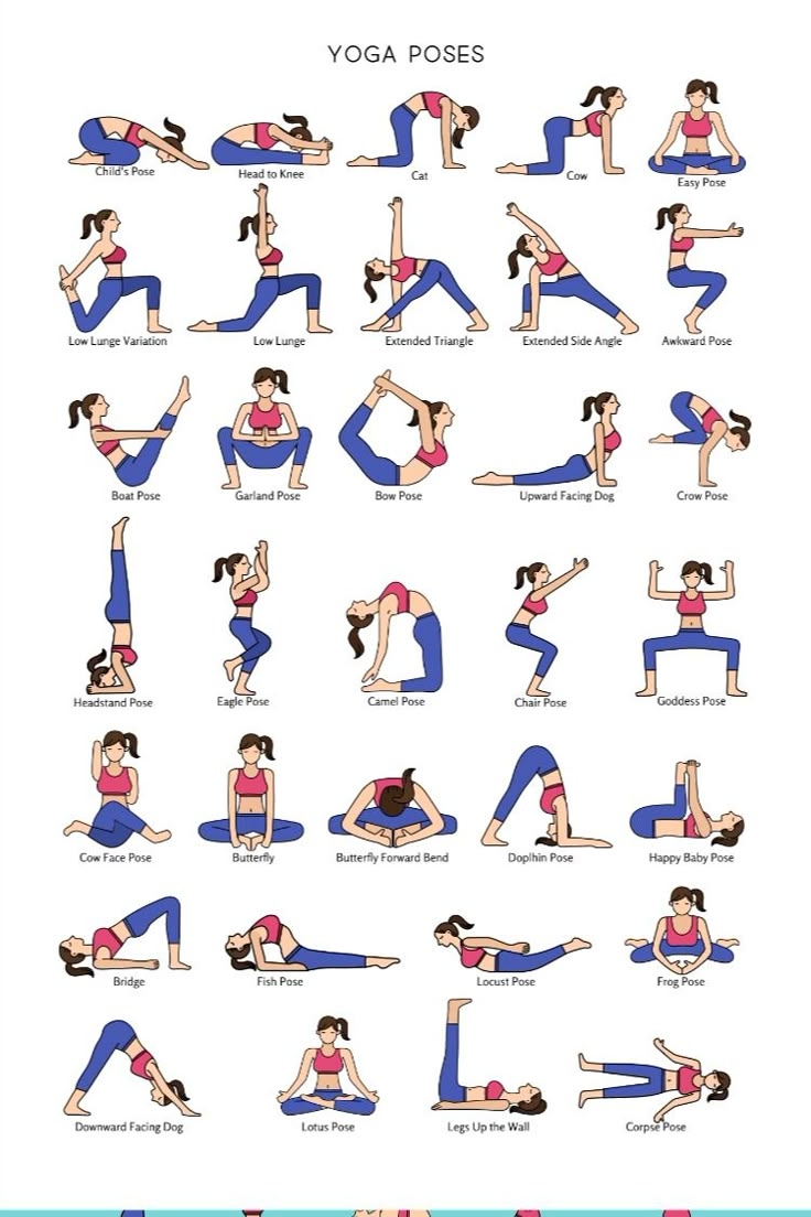 Yoga Poses Chart Beginner Asanas Sanskrit English digital Download Etsy