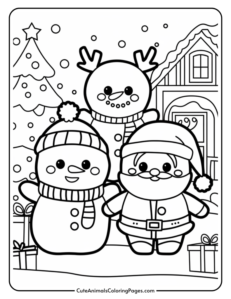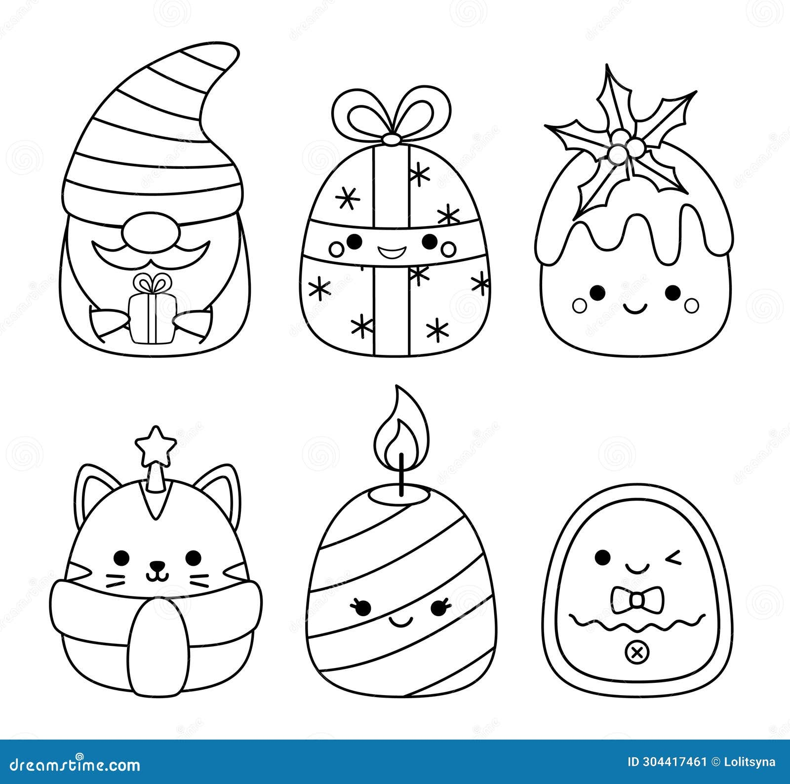 Kawaii Christmas Characters Coloring Page Squishmallow Black And White Kawaii Vector Stock Vector Illustration Of Black Vector 304417461