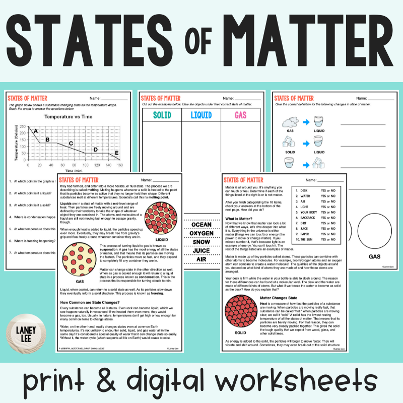 States Of Matter Worksheet Bundle Brainy And Nimble