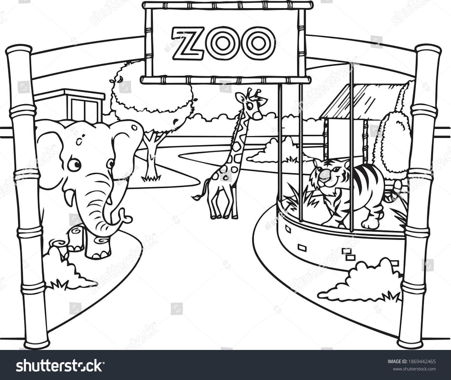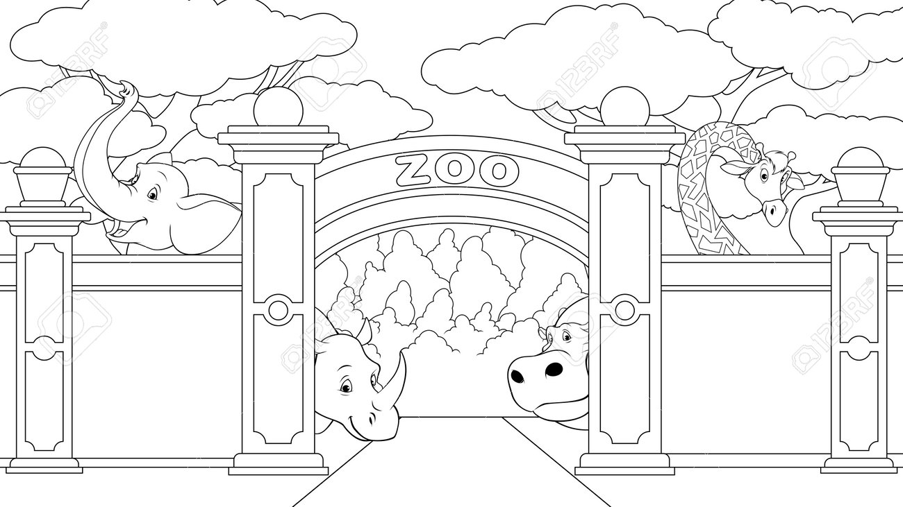 Vector Illustration Zoo Entrance With Animals Book Coloring Royalty Free SVG Cliparts Vectors And Stock Illustration Image 210863770